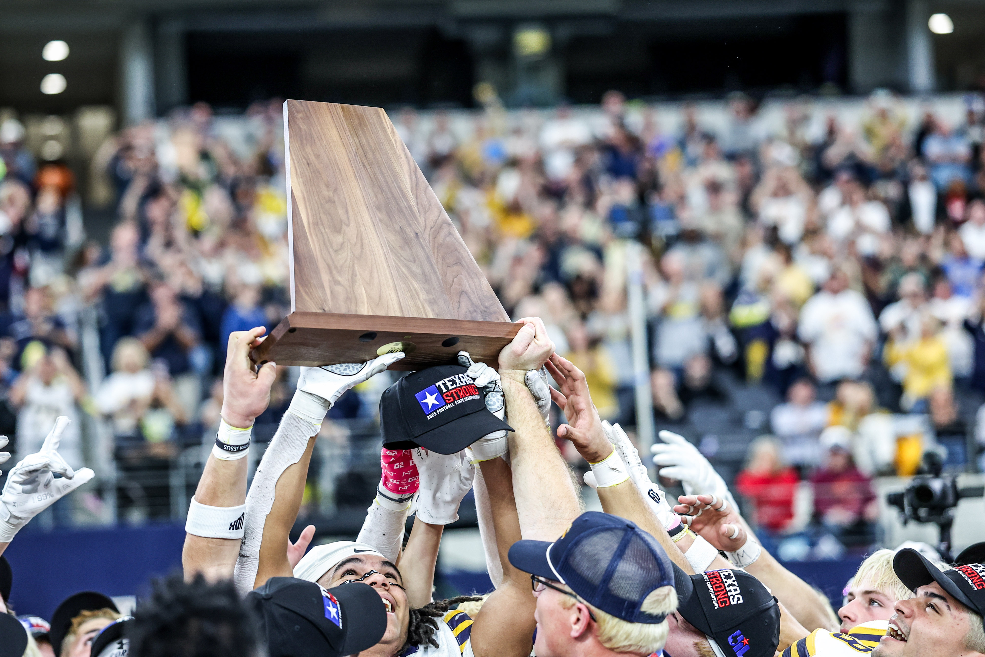Stephenville opened a new football stadium this fall that included a special room to display the school’s state championship trophies. After Friday’s 10-0 win over Kilgore in the 4A Division 1 state championship game, the Yellowjackets have one more to add to the collection.